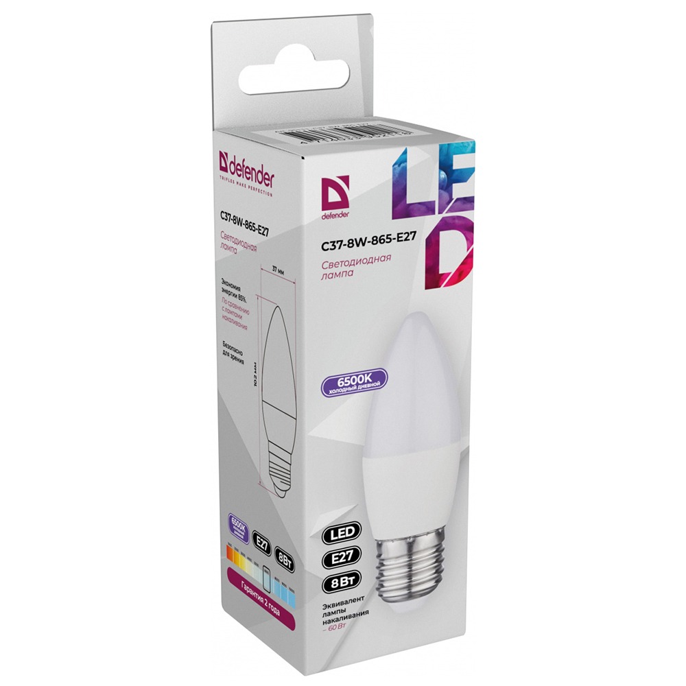 Лампа светодиодная DEFENDER C37 8Вт E27 6500К свеча холодный дневной (10/100)
