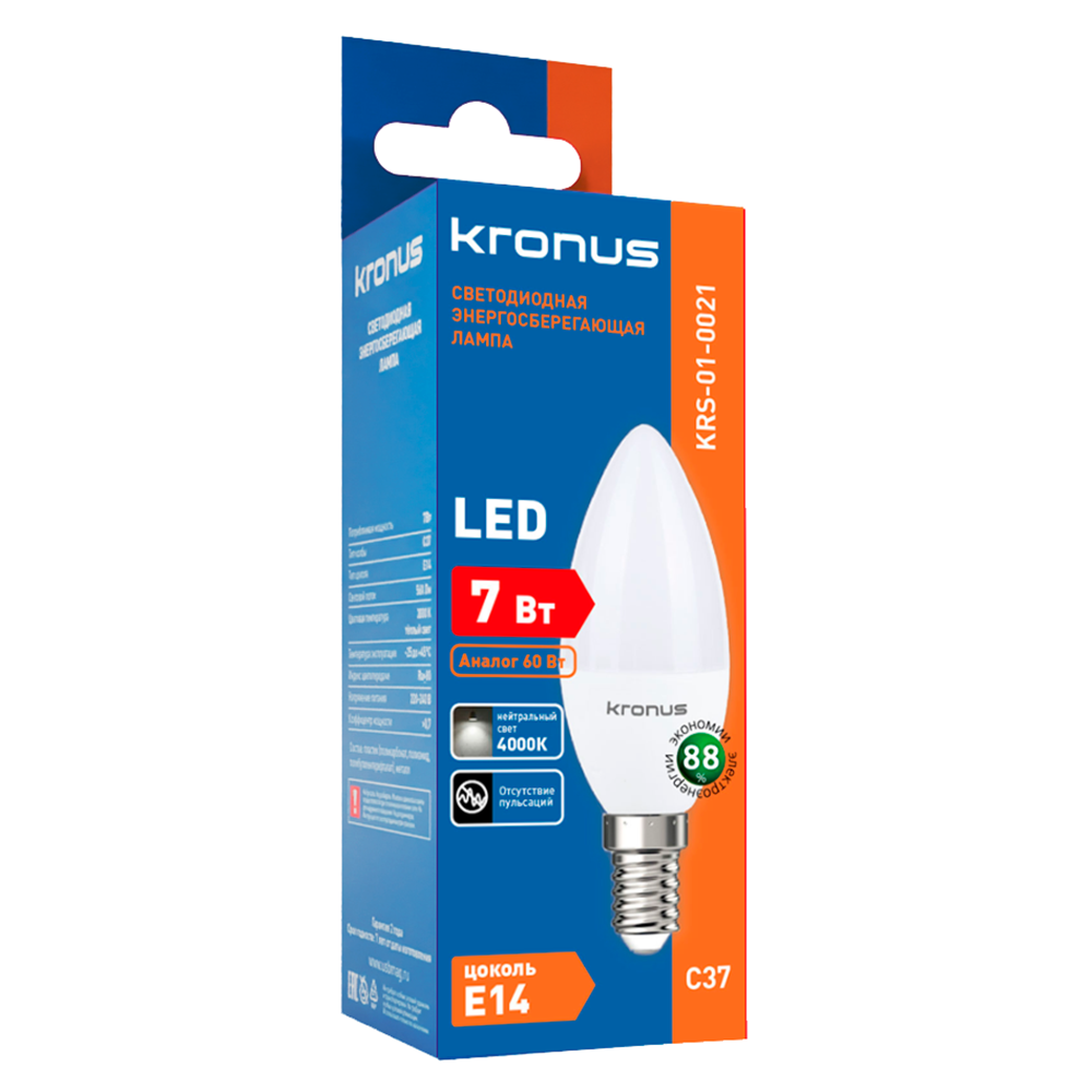 Лампа светодиодная KRONUS C37 свеча 7 Вт 220V 4000K E14 нейтральный свет (10/100)