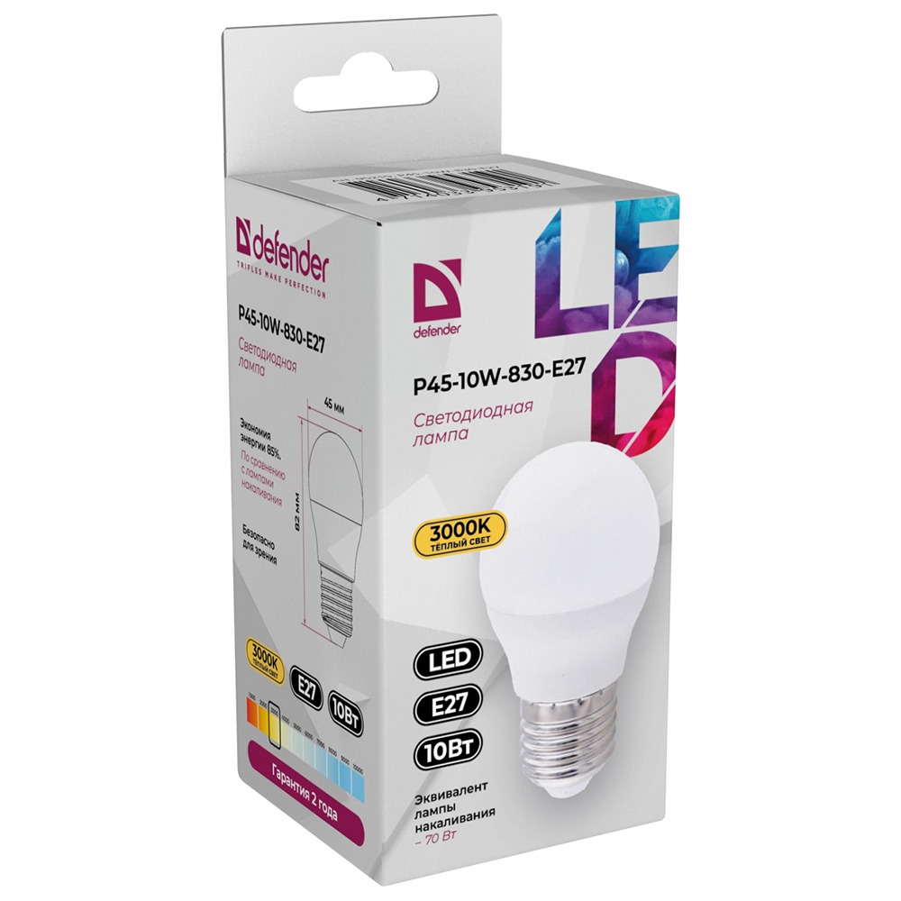 Лампа светодиодная DEFENDER P45 10Вт E27 3000К шар теплый белый (10/100)