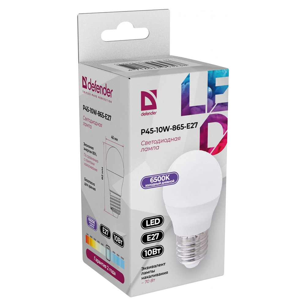 Лампа светодиодная DEFENDER P45 10Вт E27 6500К шар холодный дневной (10/100)