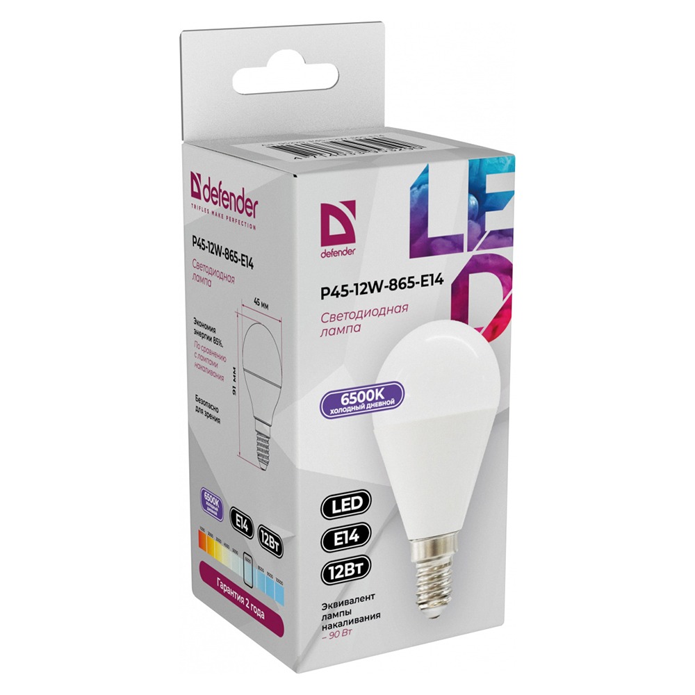 Лампа светодиодная DEFENDER P45 12Вт E14 6500К шар холодный дневной (10/100)
