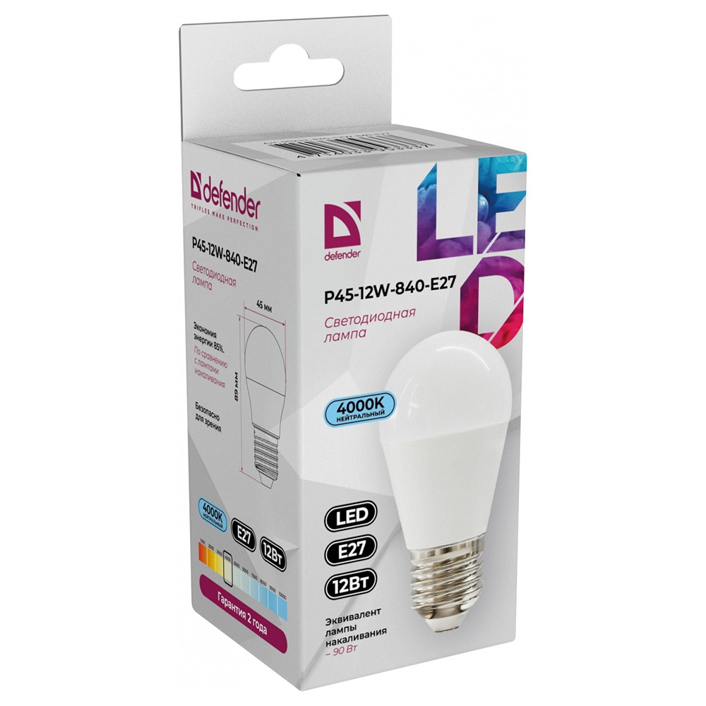 Лампа светодиодная DEFENDER P45 12Вт E27 4000К шар нейтральный белый (10/100)