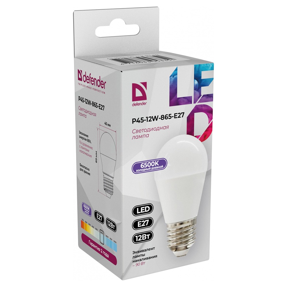 Лампа светодиодная DEFENDER P45 12Вт E27 6500К шар холодный дневной (10/100)