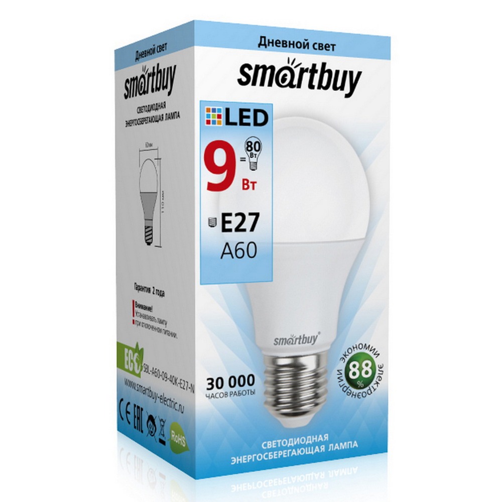 Лампа светодиодная SMARTBUY A60 9Вт 220V 4000K E27 (нейтральный свет) (1/10/100)