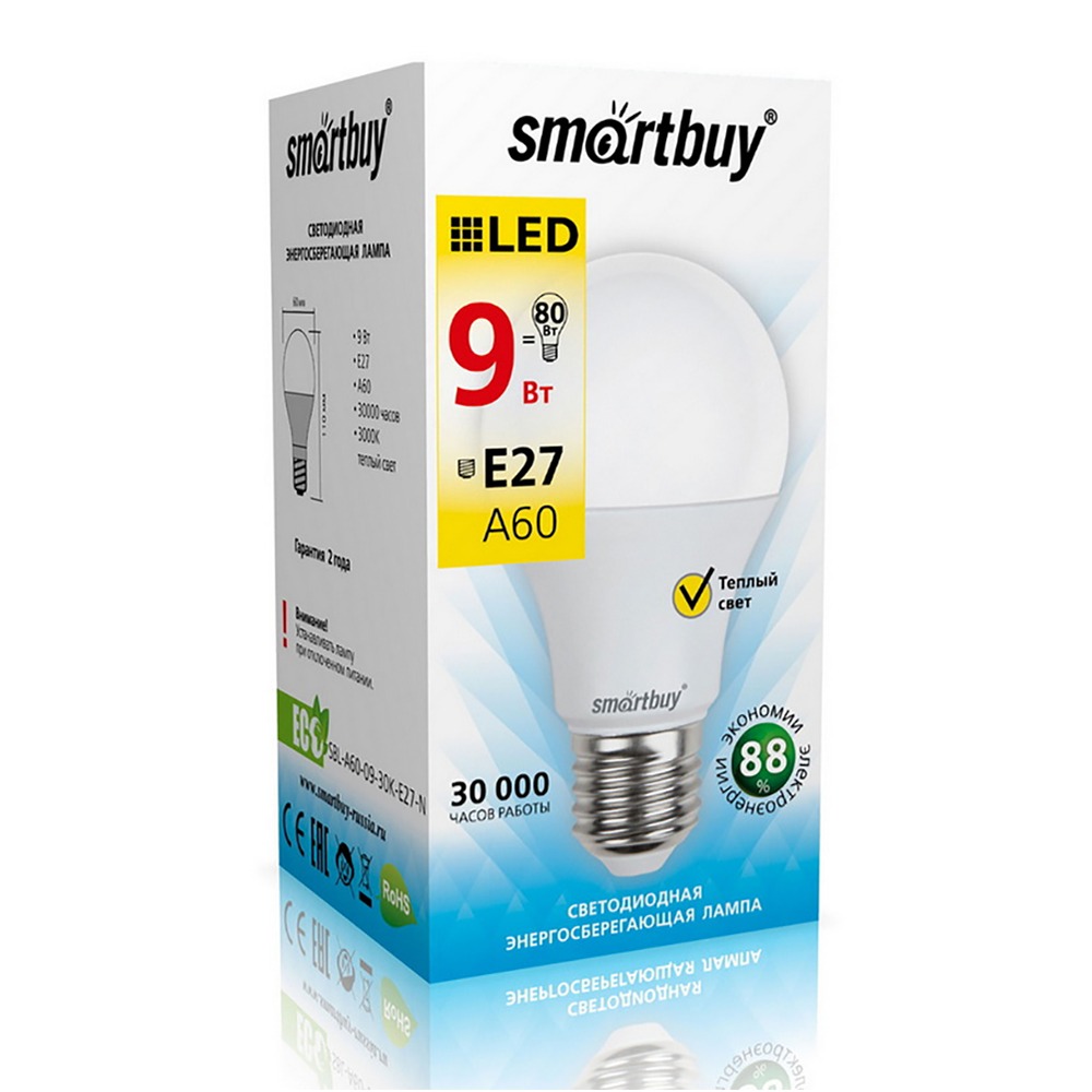 Светодиодная (LED) Лампа Smartbuy-A60-09W/3000/E27 (SBL-A60-09-30K-E27-N)
