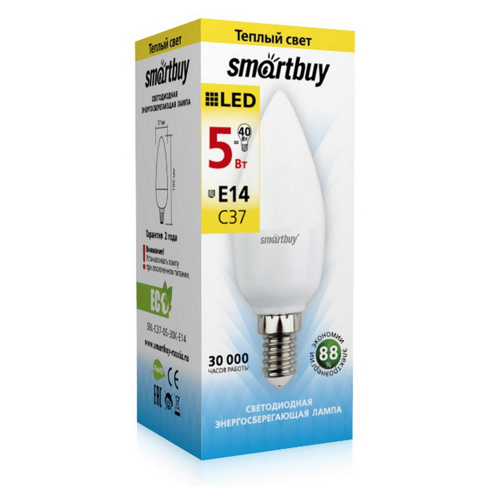 Светодиодная (LED) Лампа Smartbuy-C37-05W/3000/E14