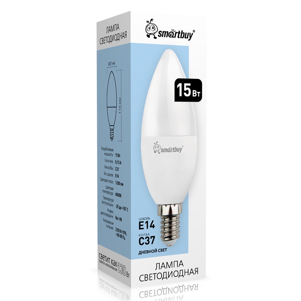Светодиодная (LED) Лампа Smartbuy-C37-15W/4000 (SBL-C37-15-40K-E14)