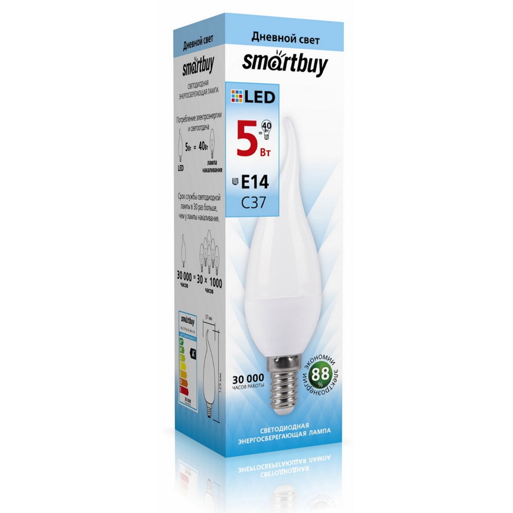 Светодиодная (LED) Свеча на ветру матовая Лампа Smartbuy-C37-05W/4000/E14 (SBL-C37Tip-05-40K-E14)