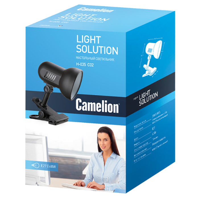 Светильник настольный Camelion H-035 40W 220V E27 прищепка черный (1/12)