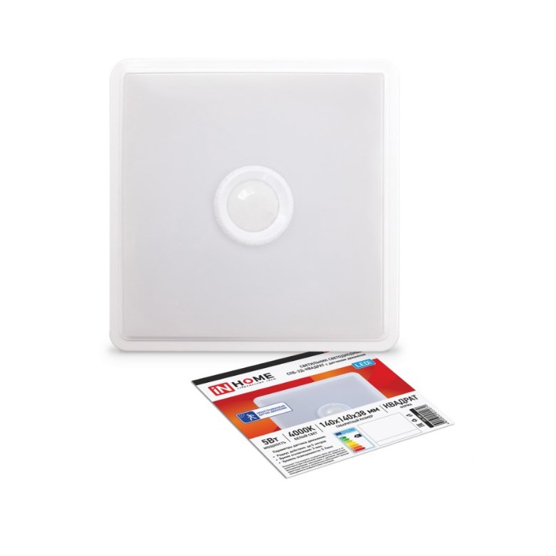 Светильник светодиодный СПБ-2Д-КВАДРАТ 5Вт 230В 4000К 400Лм 140мм c датчиком белый IN HOME (1/40)