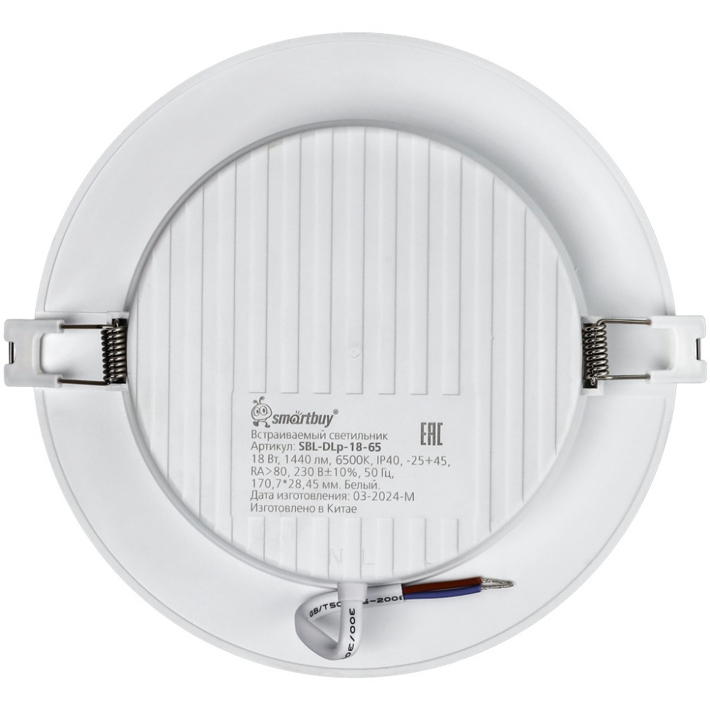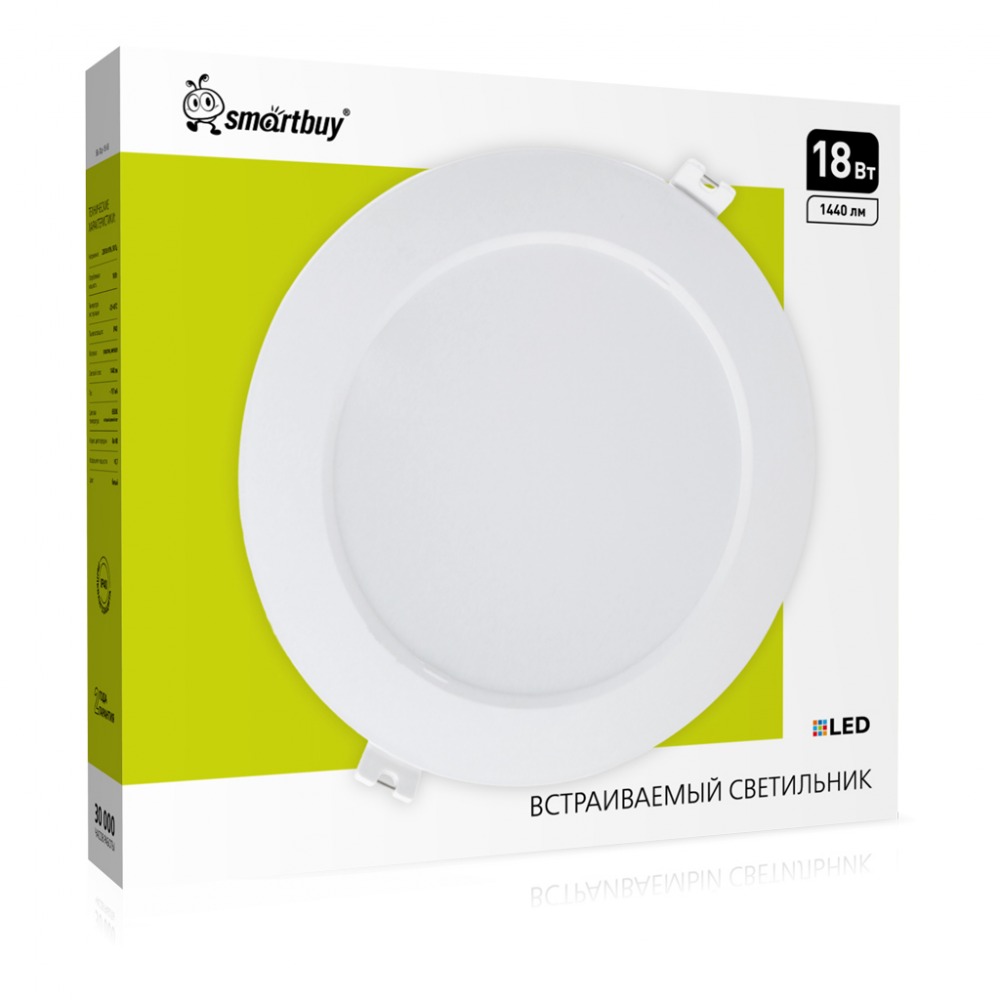Светильник светодиодный SMARTBUY встраеваемый DL круглый пластик 18Вт/6500K/IP40 (SBL-DLp-18-65) (1/60)