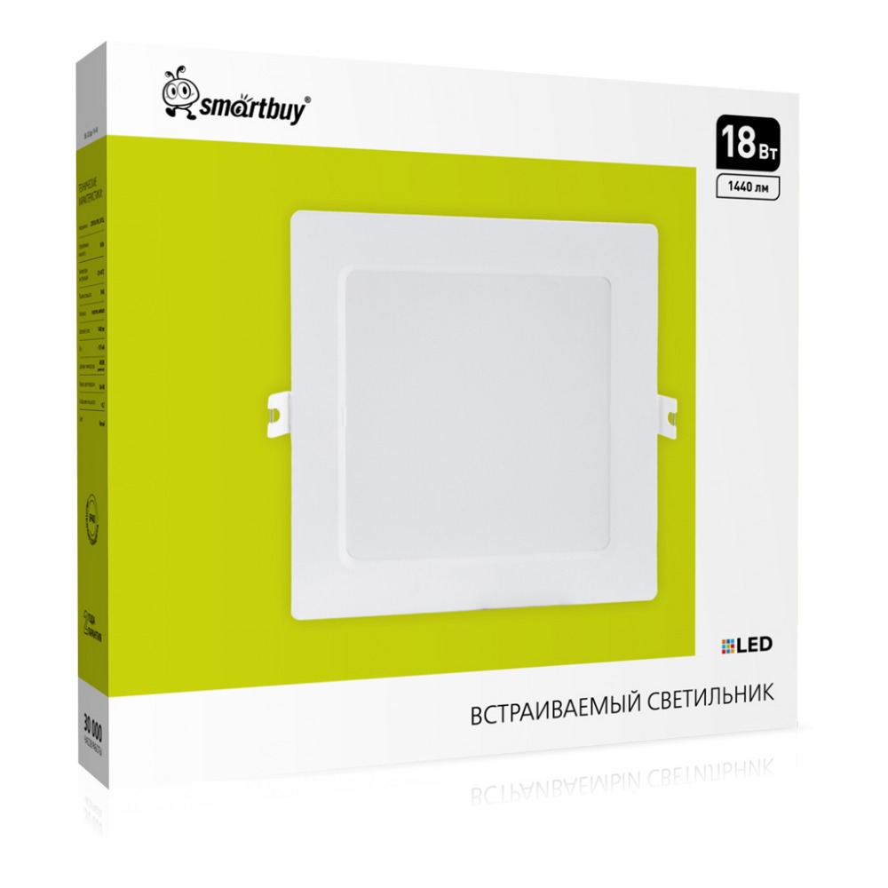 Встраиваемый (LED) светильник DL квадратный пластик Smartbuy-18Вт/4000K/IP40