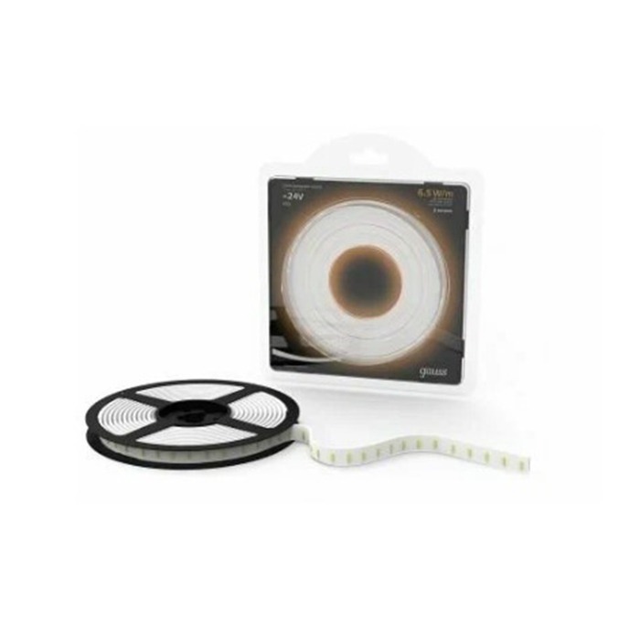 Лента светодиодная GAUSS 2835/120-SMD 6.5W 24V DC 600lm/m 3000K IP65 (блистер 5м) 1/50