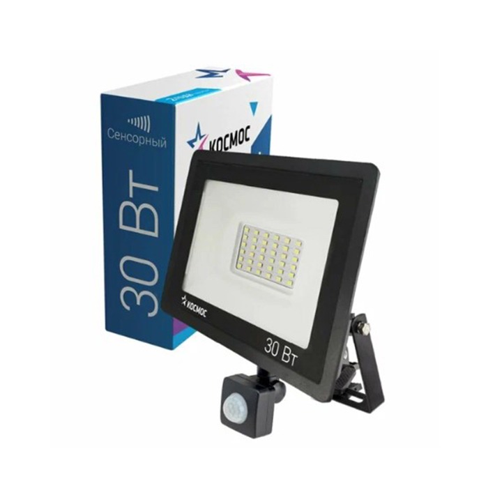 Прожектор светодиодный Космос 30W 230V IP65 6500К холодный с датчиком движения черный (1/30)