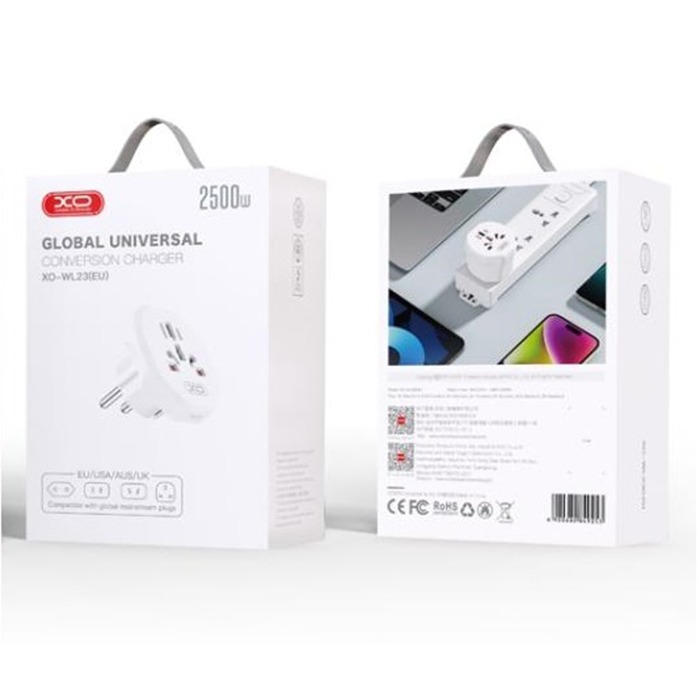 Переходник на евро вилку XO WL23, 2500Вт белый