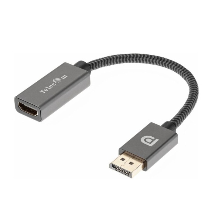 Кабель-переходник DP(M)--> HDMI-F 0.2m , серый металлик, оплетка, 4K@60Hz, TELECOM (TA560) (1/200)