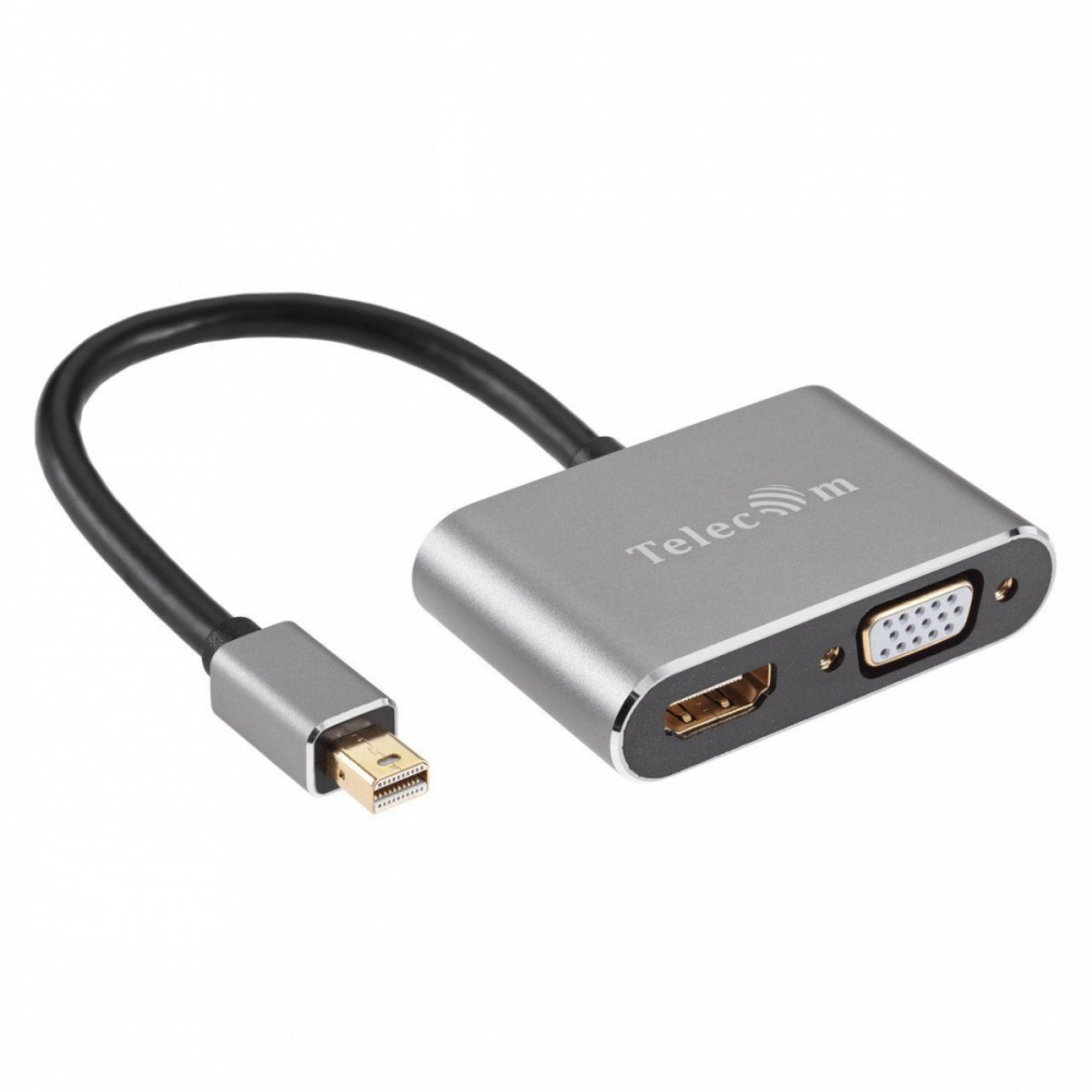 Кабель-переходник miniDP (M)--> HDMI (F)+VGA (F) 4K@30Hz Alum Grey TELECOM (TA6080) (1/200)
