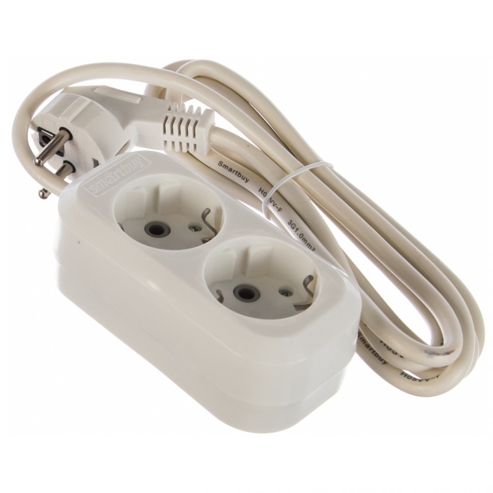 Удлинитель Smartbuy 2 гнезда 2 метра 16А/3,5кВт с заземлением ПВС 3х1,0 (SBE-16-2-02-Z)/40