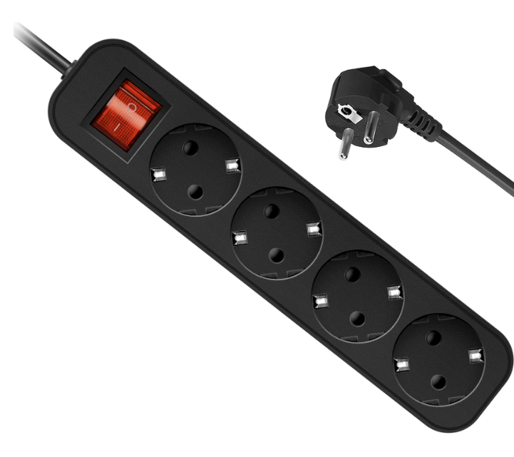 Удлинитель на 4 розетки с заземлением предназначен для одновременного подключения нескольких электроприборов в местах, удаленных от стационарных розеток.