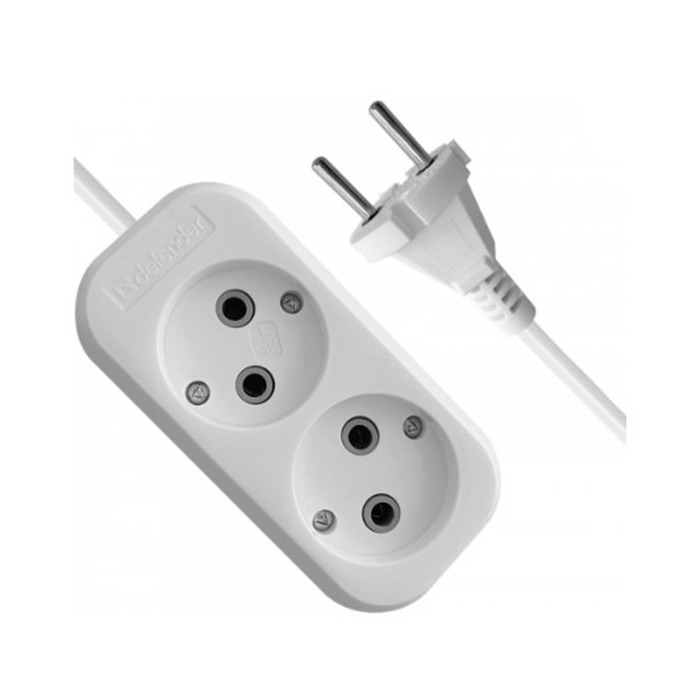 Удлинитель DEFENDER B220 2 гнезда, 5 метров, 10А/2200Вт, без заземления, ПВС 2х1,0мм, белый (1/40)