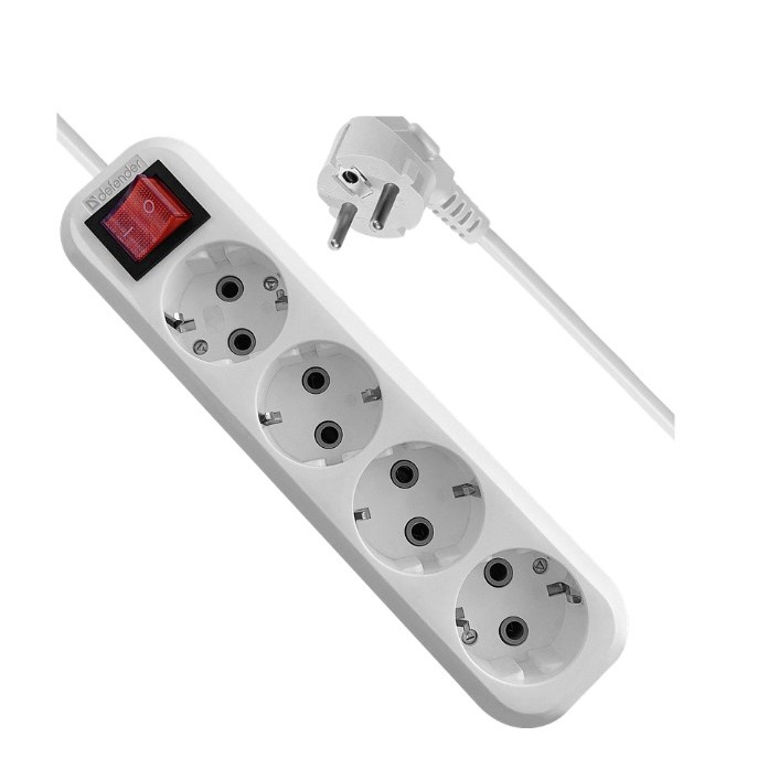 Удлинитель DEFENDER L340 4 гнезда, 7 метра, с заземлением, 16А/3500Вт, ПВС 3х1,0мм, с выключателем, белый (1/25)