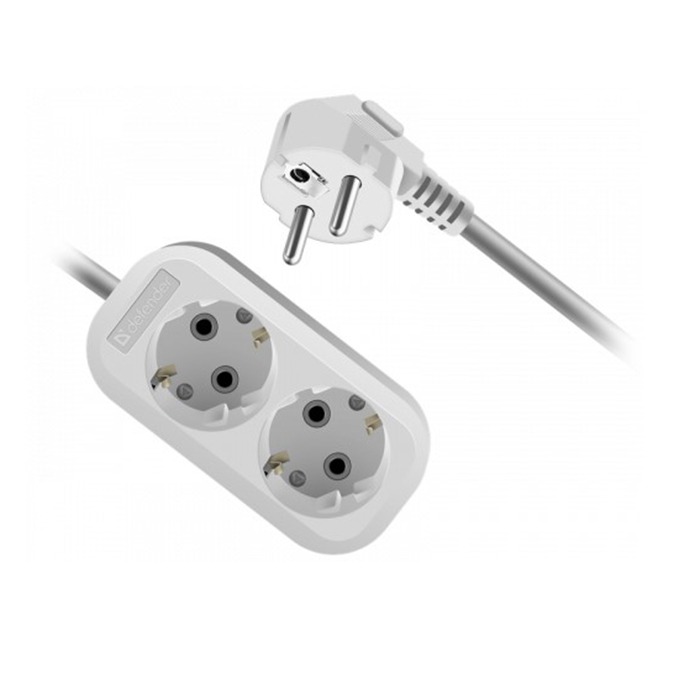 Удлинитель DEFENDER R320 2 гнезда, 5 метров, 16А/3500Вт, с заземлением, ПВС 3х1,0мм, белый (1/40)