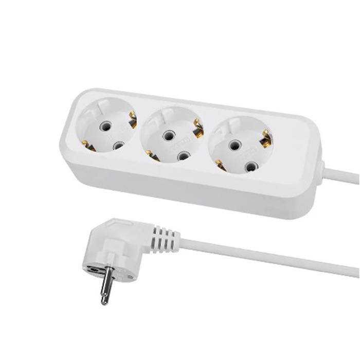 Удлинитель НАРОДНЫЙ 3 гнезда, 10 метров, с заземлением, 16А, 3680 Вт, белый, ПВС 3х1,0 (1/24)
