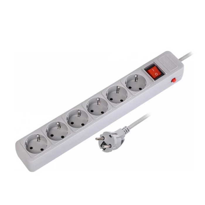 Сетевой фильтр SMARTBUY 16А, 3500 Вт, 6 гнезд, без з/ш, с з/к, ПВС 3x1.0, 5 м, серый (1/35)