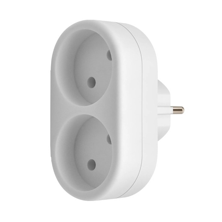 Блок-разветвитель DEFENDER TA-02 на 2 гнезда, без заземления, плоский, 220 - 230 В / 50-60 Гц, 10А, белый (1/80)