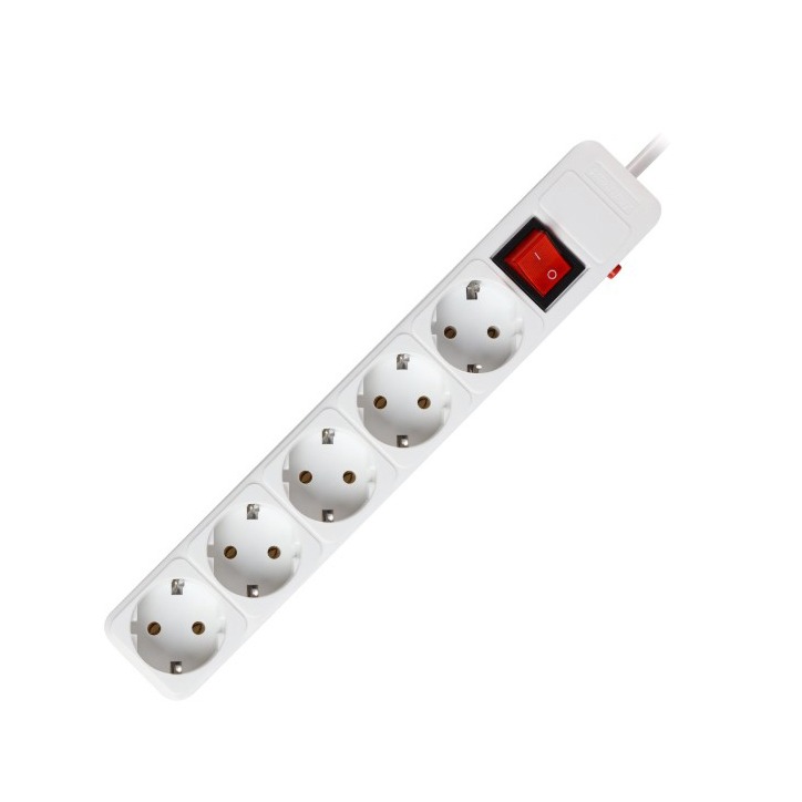 Сетевой фильтр SMARTBUY 16А, 3500 Вт, 5 гнезд, с з/ш, земля, ПВС 3x1.0 мм², 5,0 м, белый (1/35)
