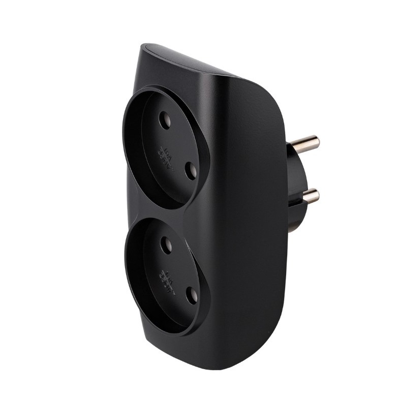 Разветвитель сетевой Тройник , 2 гнезда без заземления 10А 250B, черный (SBE-10-A04b-2)