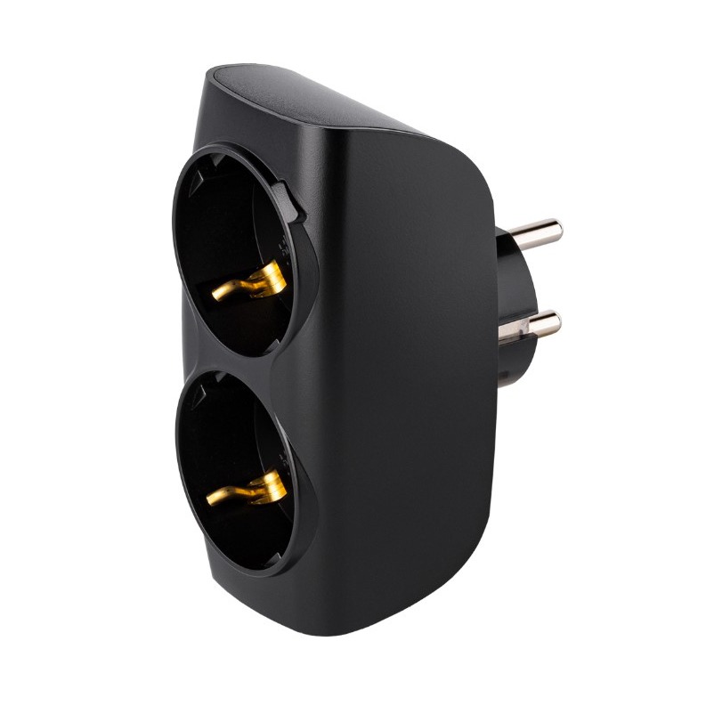 Разветвитель сетевой Тройник , 2 гнезда с заземлением 16А 250B, черный (SBE-16-A04b-2z)
