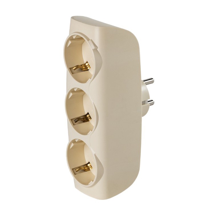 Разветвитель сетевой Тройник , 3 гнезда с заземлением 16А 250B, бежевый (SBE-16-A04i-3z)