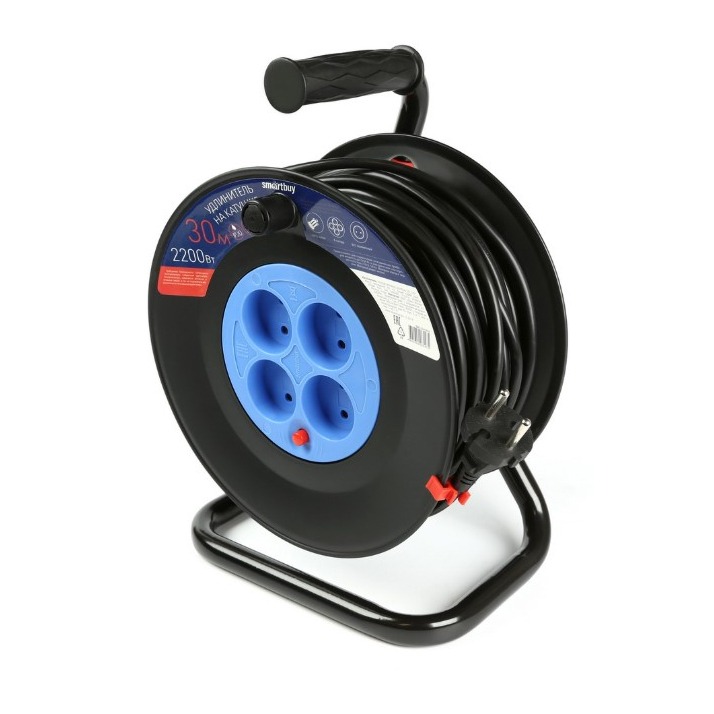 Удлинитель на катушке 4 гнезда 30м,без заземления с предохранителемПВС 2*1,0 10А/2,2кВт