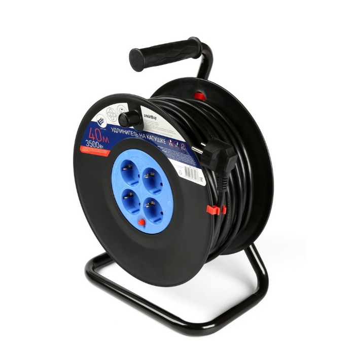 Удлинитель на катушке 4 гнезда 40м,с заземлением и предохранителемПВС 3*1,5 16А/3,5кВт