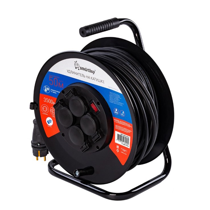 Удлинитель на катушке 4 гнезда 50м с заземлением и предохранителем КГ 3*2,5 16А/3,5кВт IP44