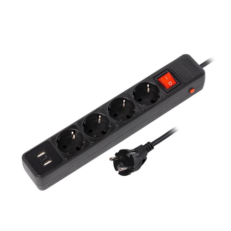 Сетевой фильтр c USB+Type C, 16А, 4 гнезда, c з/ш, с з/к, ПВС, 1.8 м, черный (SBSP-18C-K)