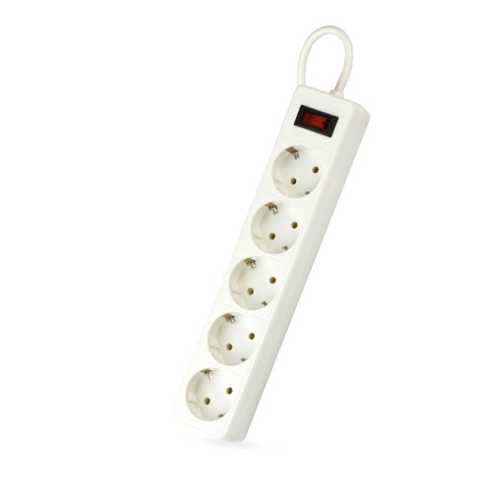 Сетевой фильтр Smartbuy, 10А, 2200 Вт, 5 гнезд, без з/ш, земля, ПВС 3x0,75, 1,8 м, белый (SBSP-18-W)