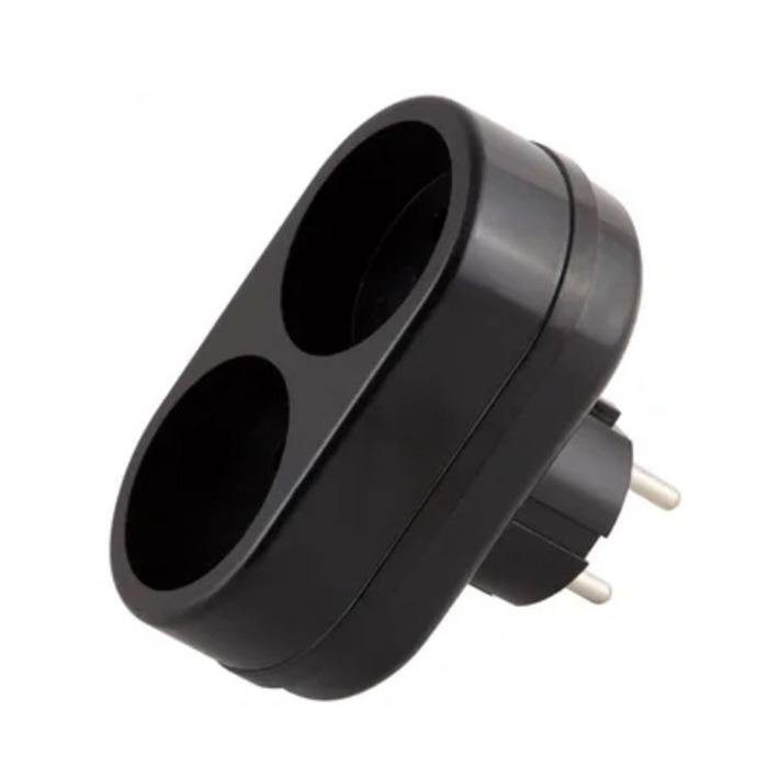 Разветвитель Toker 2Т 2р.Б/З в индивидуальной упаковке с подвесом черный (1/50)