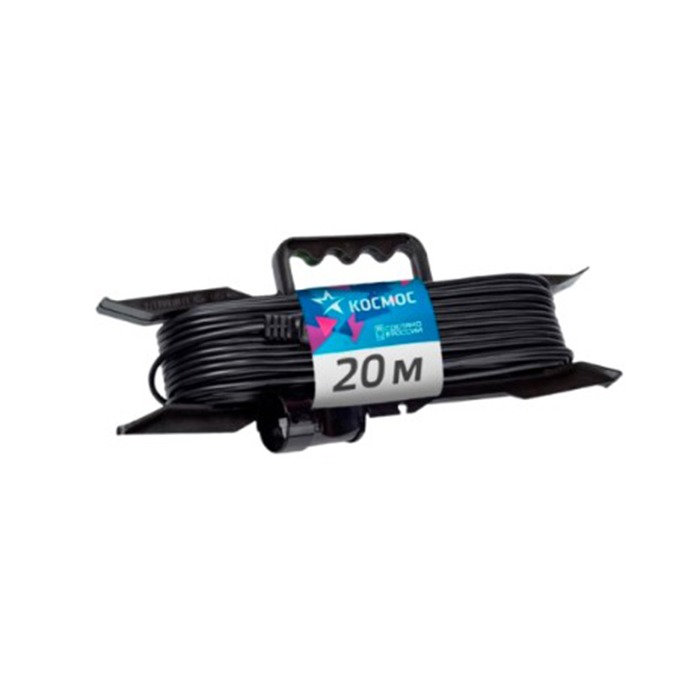 Удлинитель Космос 1р.Б/З 6A 20.0м ПВС черный (1/10)
