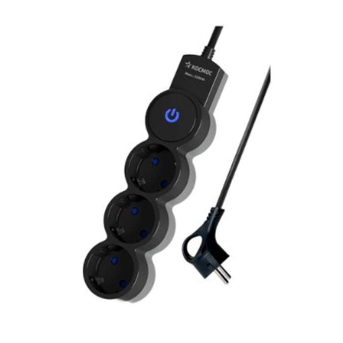 Удлинитель Космос 3р.С/З 10A 1.5м с выкл. ПВС 3х0.75мм² IP20 черный (1/35)