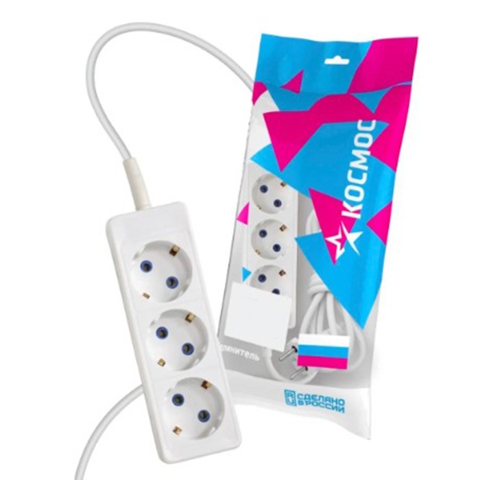 Удлинитель Космос 3р.С/З 10A 5.0м ПВС 3x0.75мм² белый (1/25)