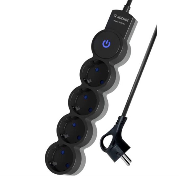 Удлинитель Космос 4р.С/З 10A 3.0м с выкл. ПВС 3х0.75мм² IP20 черный (1/25)