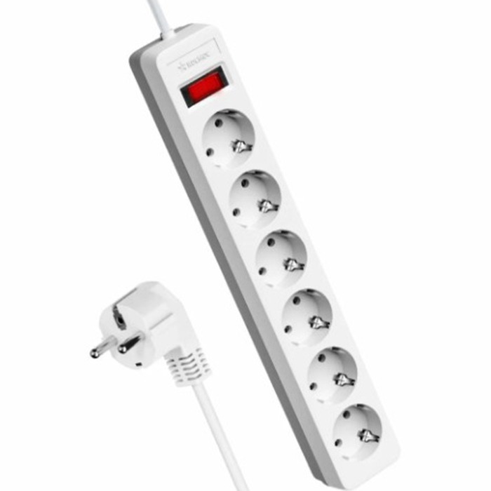 Сетевой фильтр Космос 6р.С/З 16A 5.0м ПВС 3x1мм² с выкл. белый (1/20)