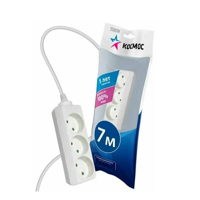 Удлинитель Космос 3р.Б/З 16A 7.0м белый (1/20)