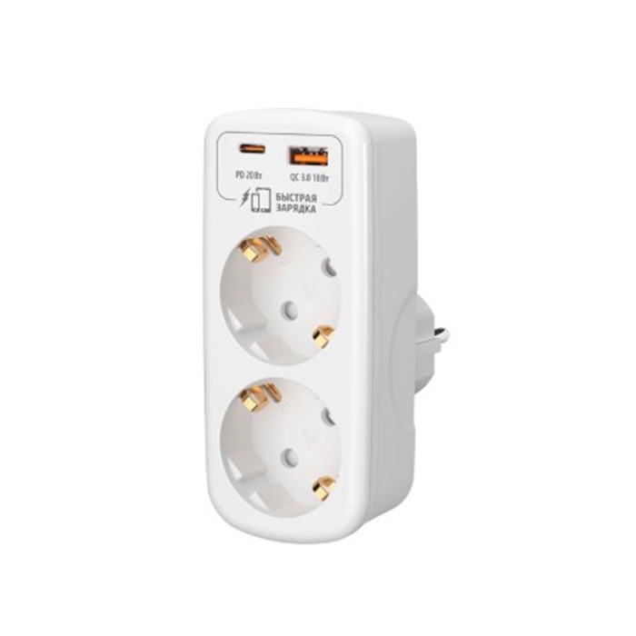 Разветвитель Фотон AM 16-2E-USB/A1C1-QC 2р.С/З 16A PD,QC белый (1/6/72)