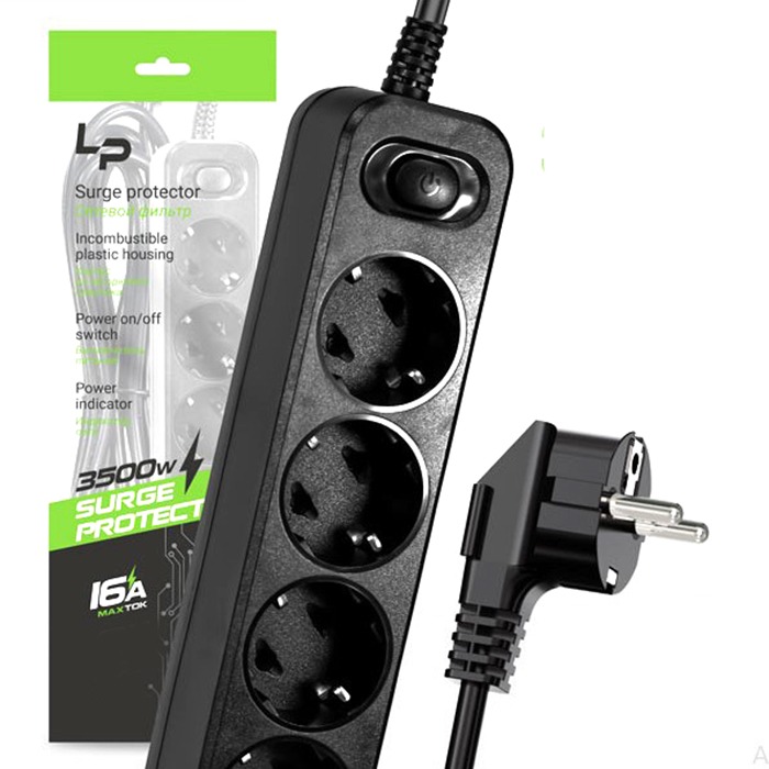 Сетевой фильтр LP1011,5 розеток, С/3 16A с выкл. (черный) 8м