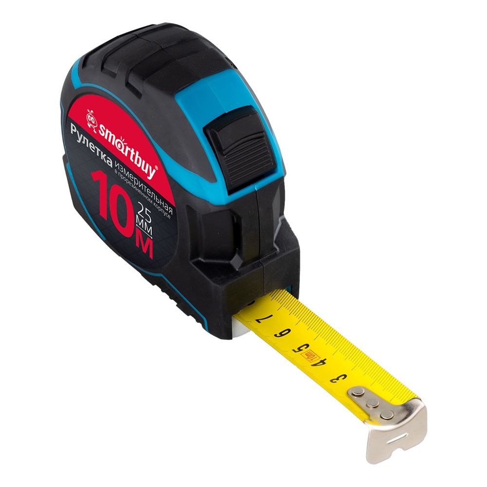Рулетка измерительная, 10мх25мм, прорезиненный корпус,противоуд., усиленный зацеп,SmartbuyTools