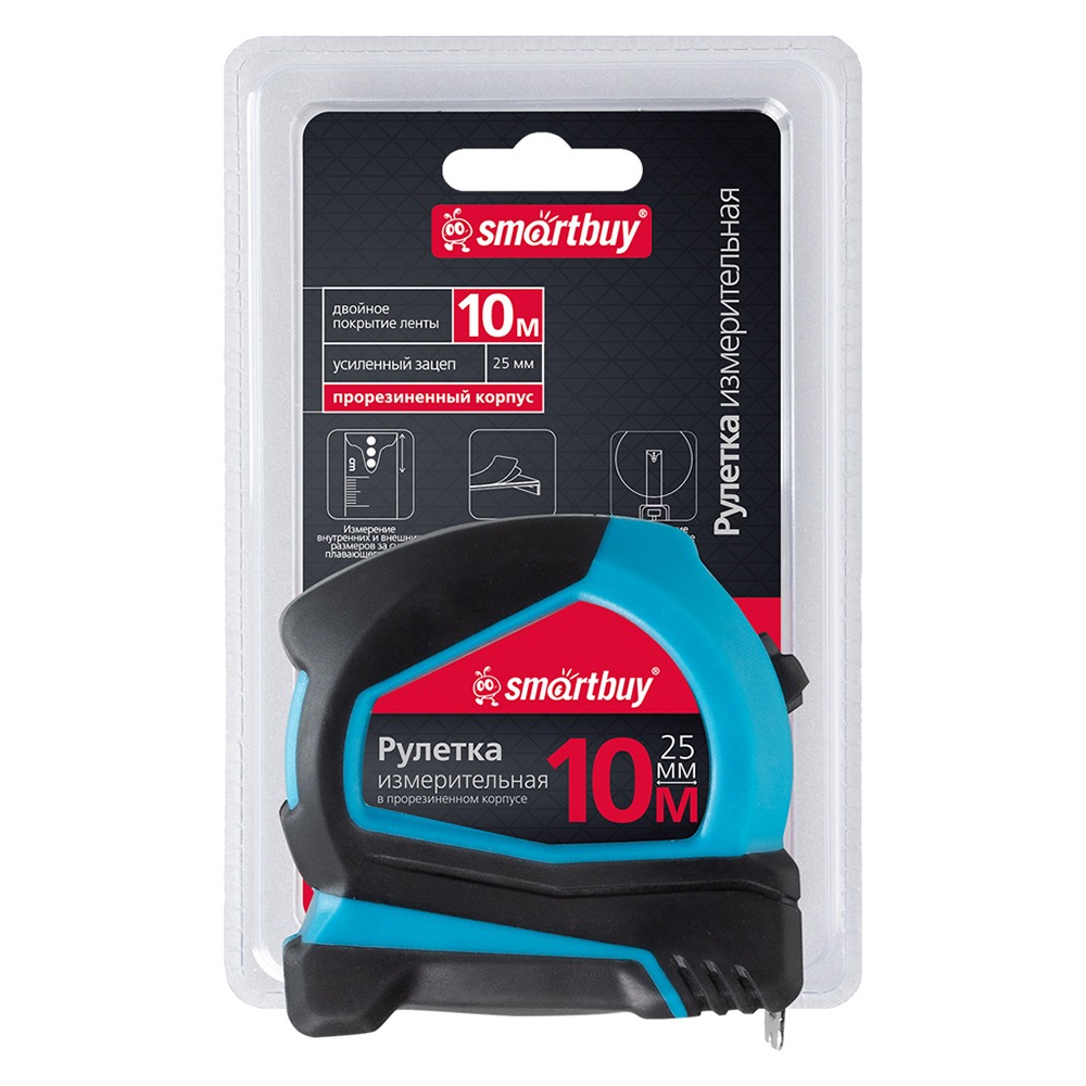 Рулетка SMARTBUY измерительная 10мх25мм, прорезиненный корпус, эрг. форма, усиленный зацеп (1)