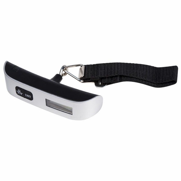 Груз фиксируется прочным нейлоновым ремнём. Прибор выполнен в строгом лаконичном дизайне и предназначен для взвешивания грузов до 50 килограмм.